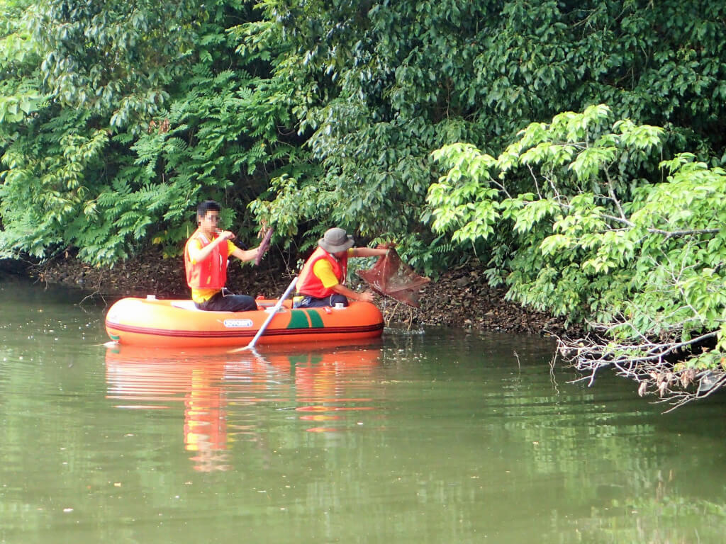 篠山城跡堀におけるミシシッピアカミミガメやオオクチバス、 ブルーギルなどの外来生物の防除調査に取り組んでいます。